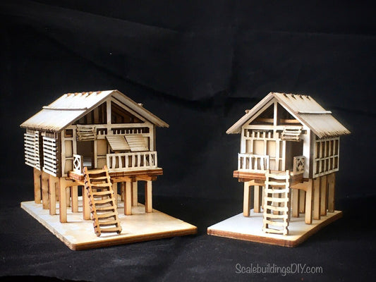 1:100 TABLETOP GAMING TERRAIN Asian water hut fishing hut model kit building wood model gift (2 houses per kit)