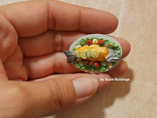 Handmade Decorated Salmon Plate Dollshouse Accessory 1:12th
