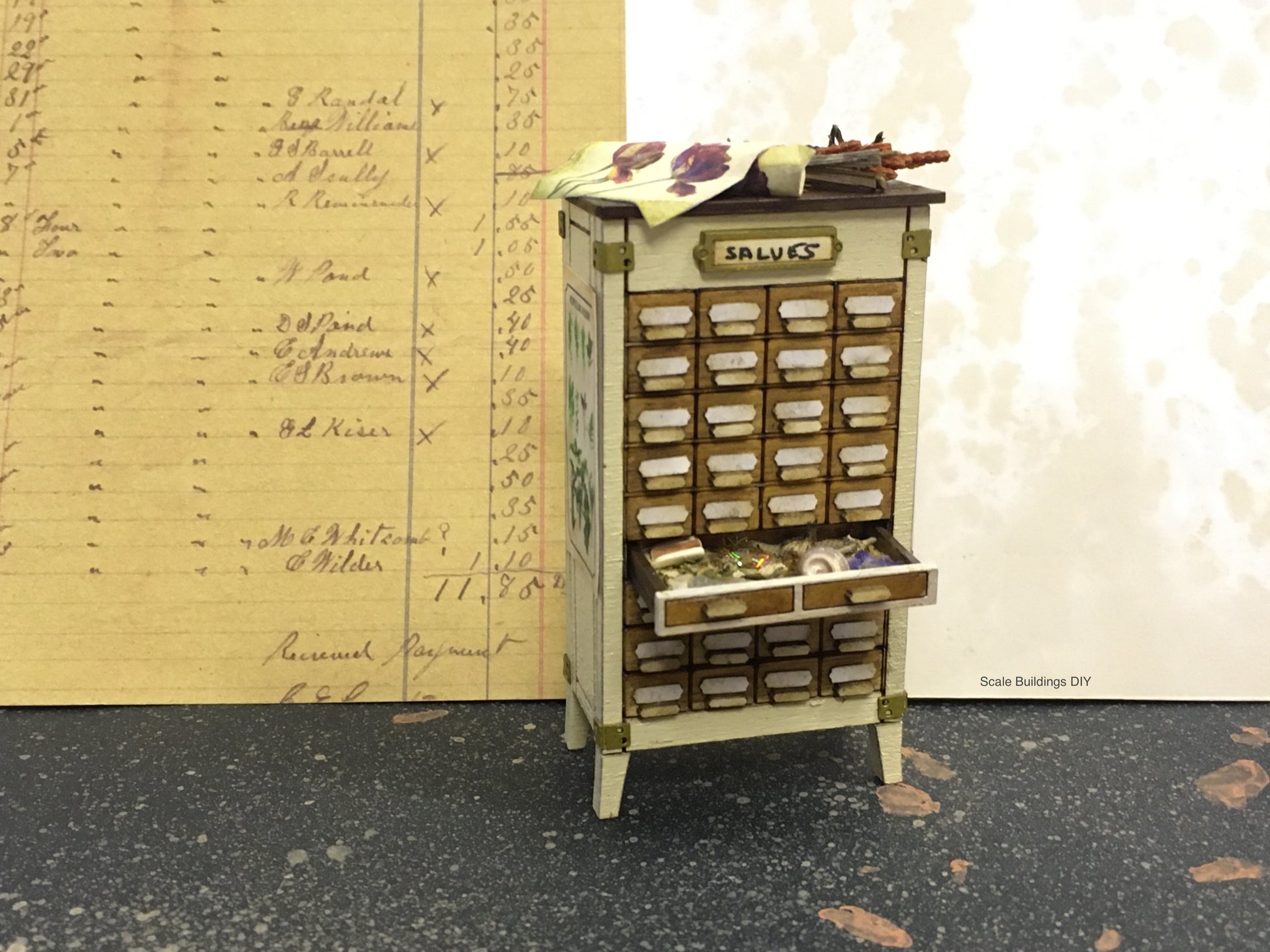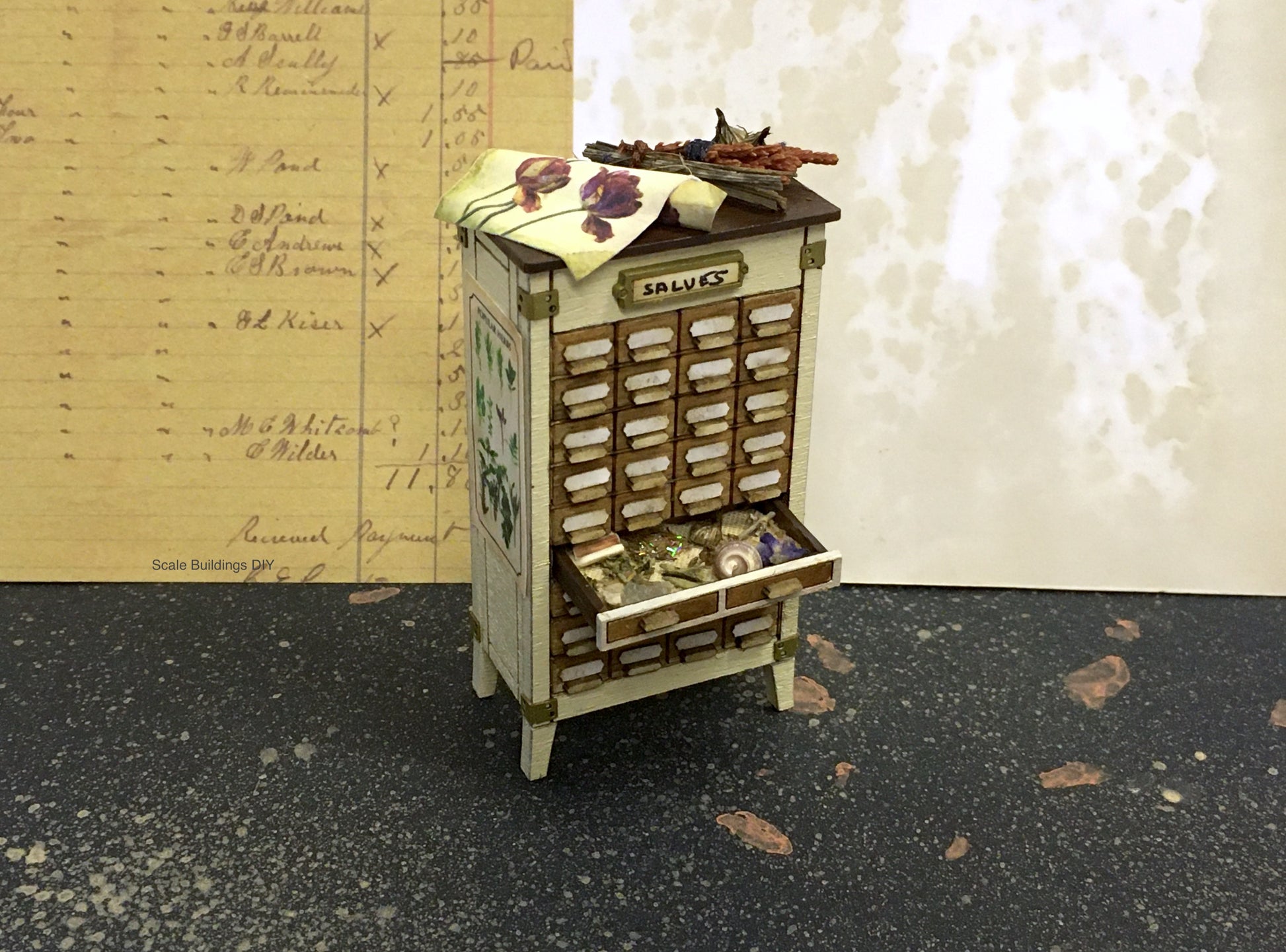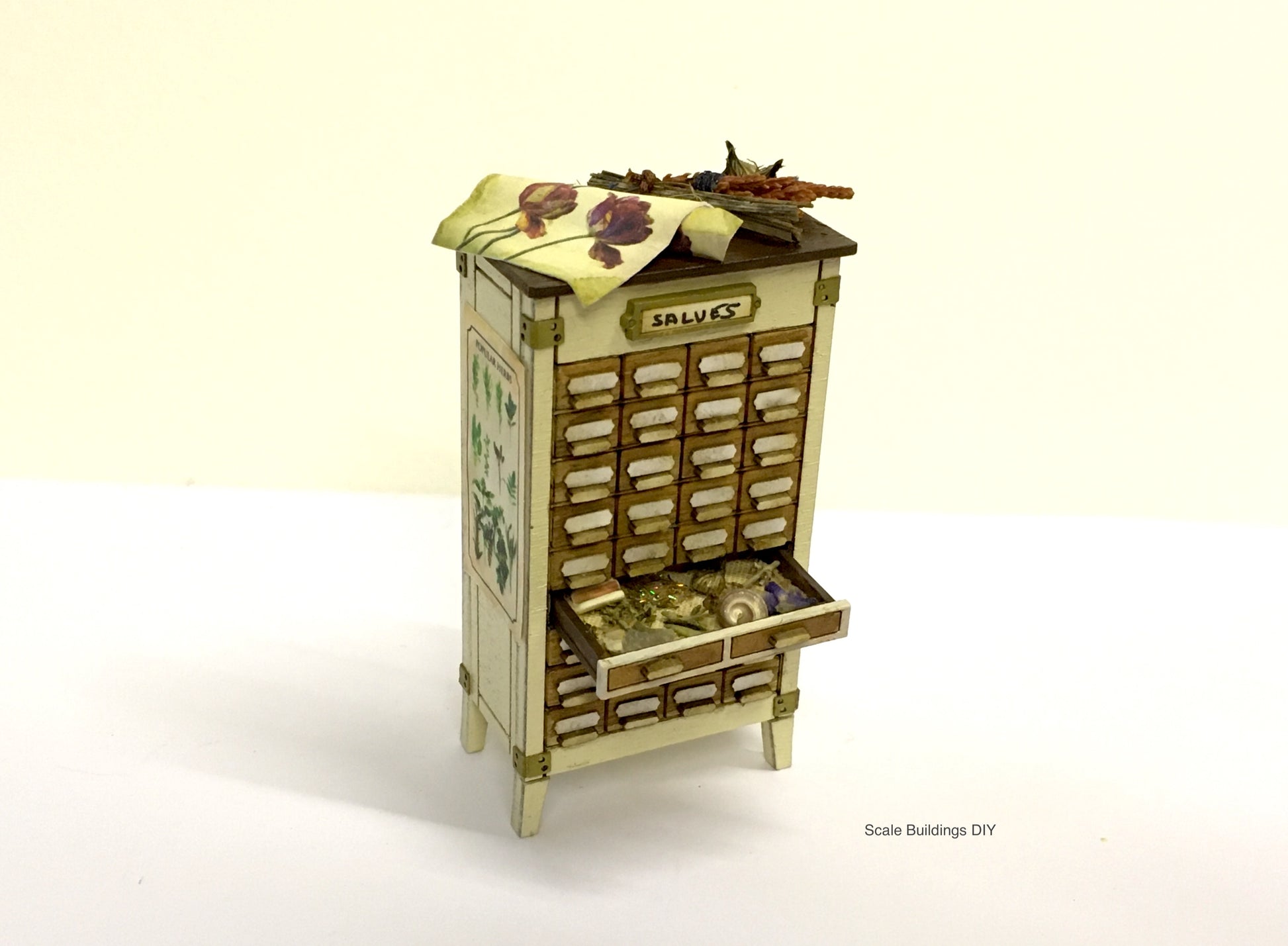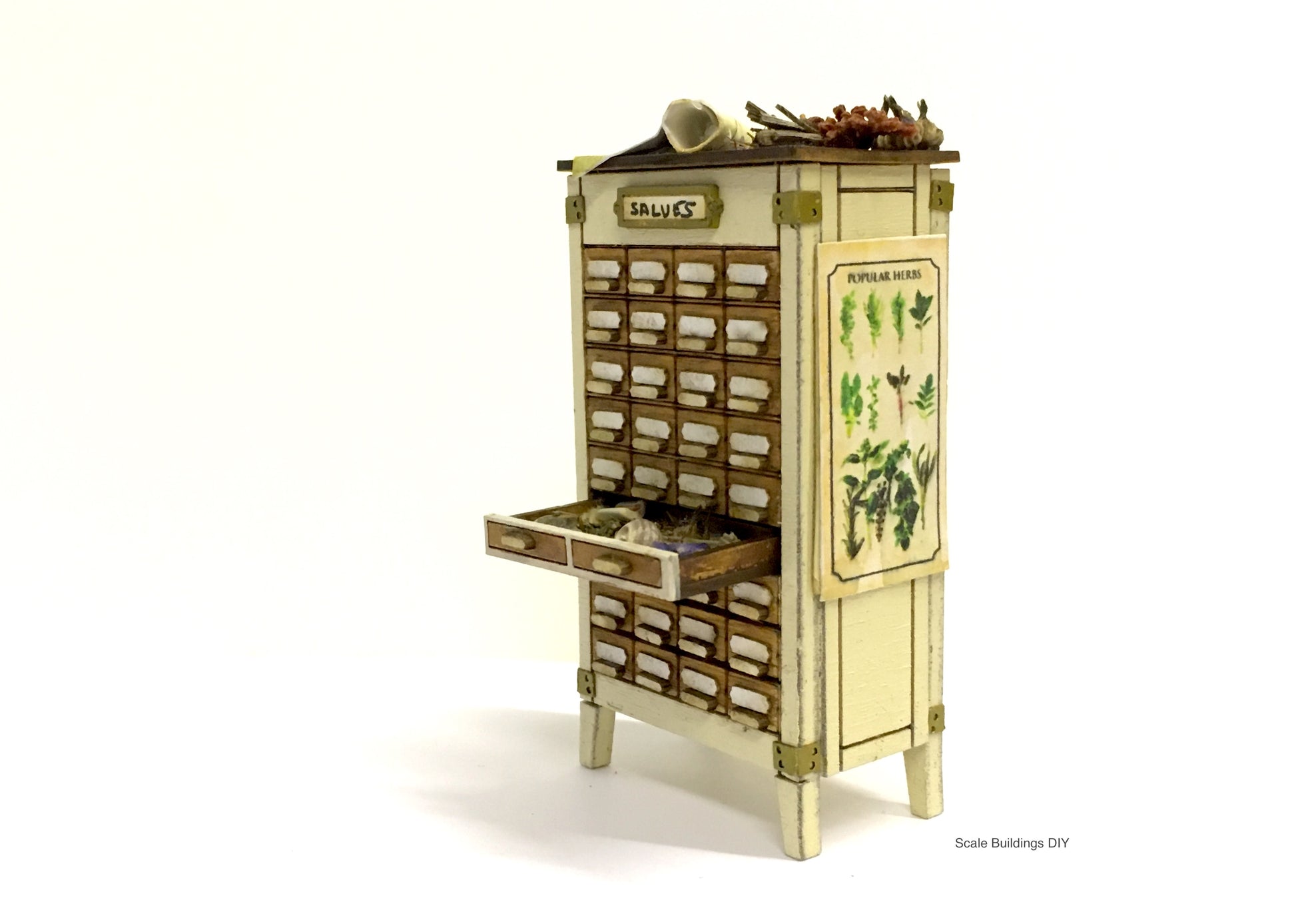 1:24 Herbalist Apothecary cabinet decorated miniature dollhouse model