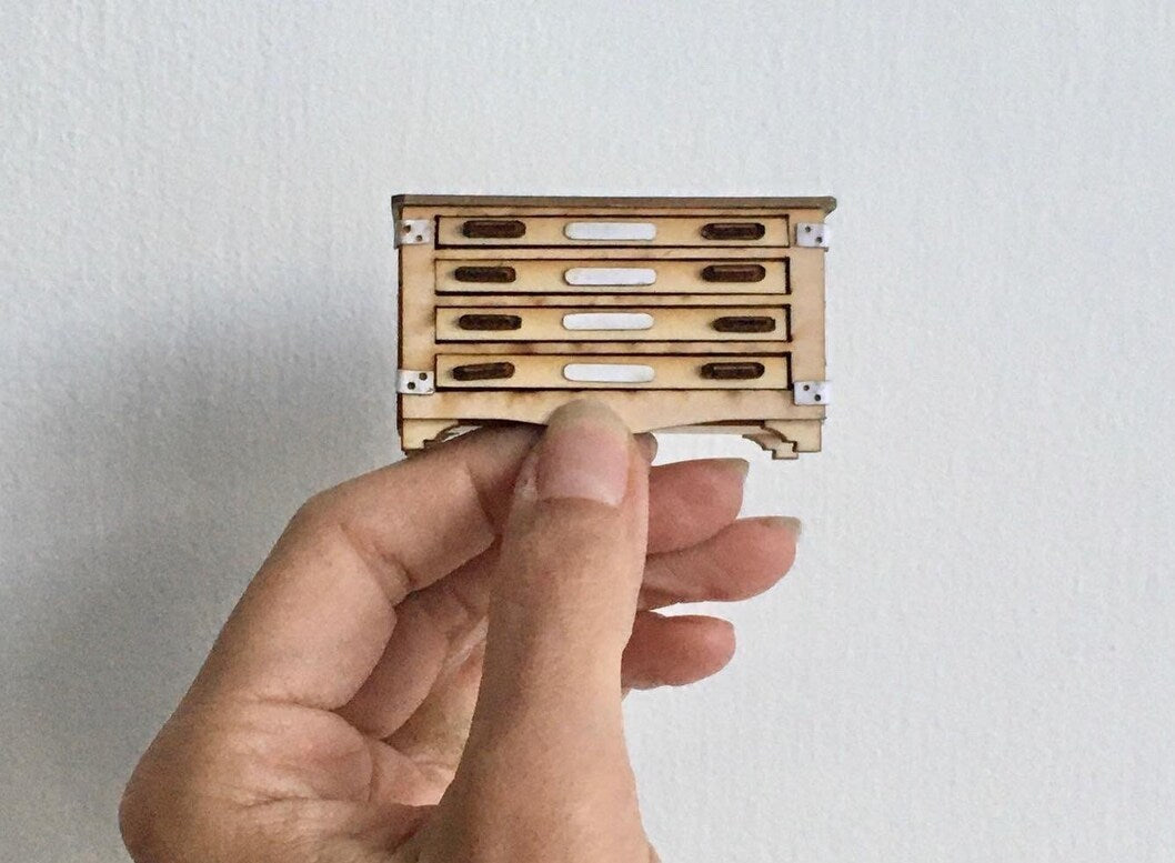 1:24th Industrial Drawer Unit Kit - Horizontal format builds to create a unit comprising of 4 functional drawer inserts with dividers to carry all your tiny character’s possessions.