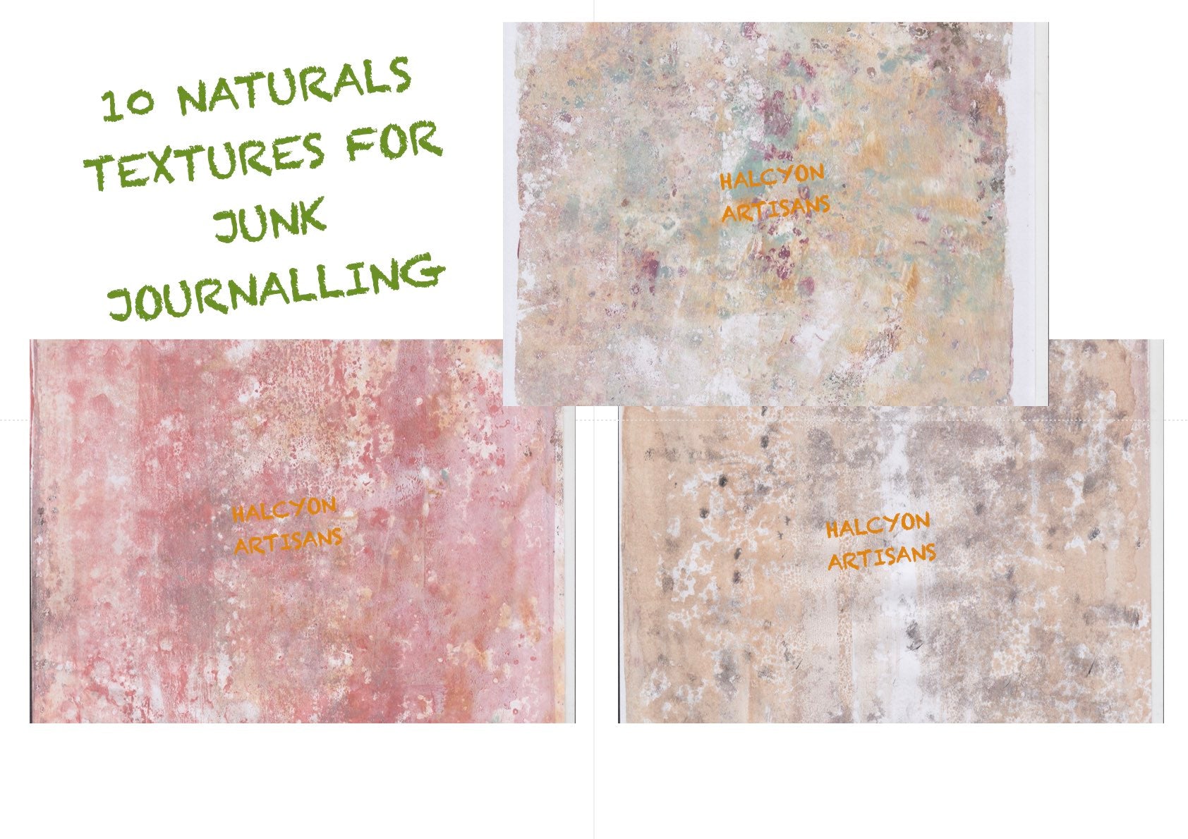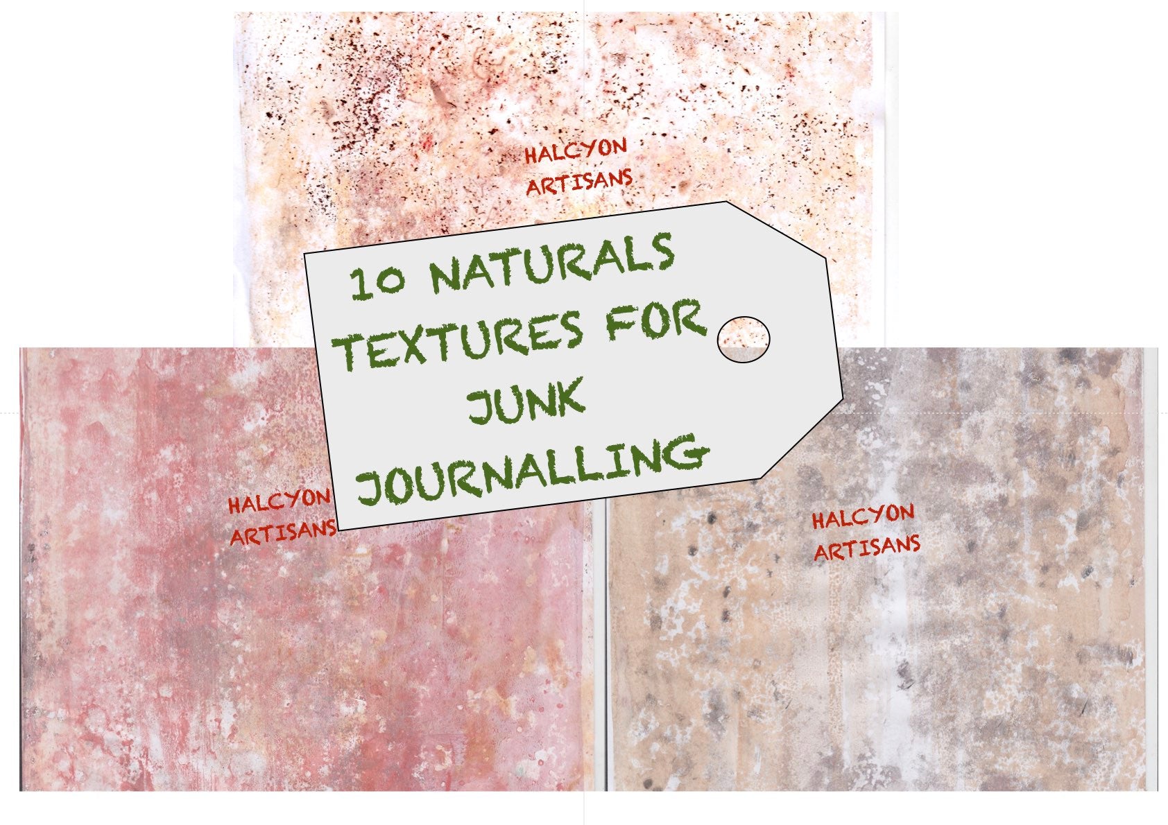 10 pack of unique naturals handmade textures as a downloadable digital pack that you can download and print for use in your own journalling projects!