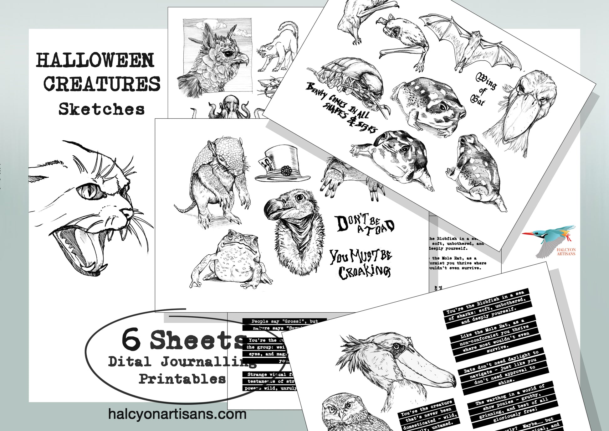 HALLOWEEN CREATURES SKETCHES Digital Printables