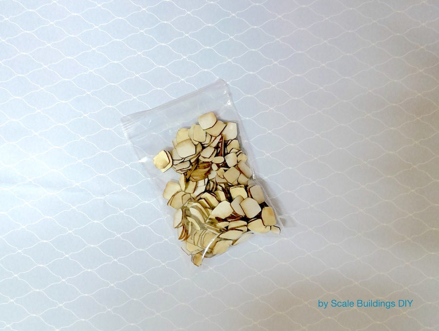 A pack of rough card stone shapes for adding decoration to your fantasy miniature model buildings. Simple white.